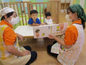 こんにちは。サンライズキッズ保育園・高槻園です(^o^) 絵本の読み聞かせの様子をお届けしております...