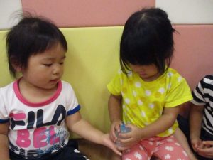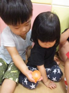 まだ触っていないお友だちにやさしく渡していましたよ![]()