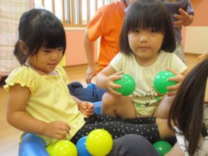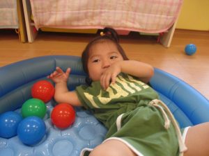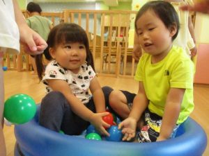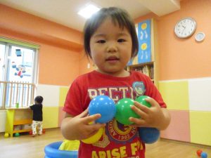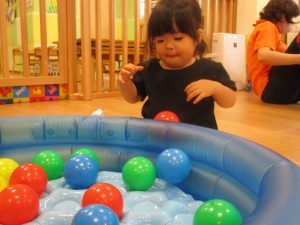 入る他にもボールを集めて中に入れたり出したりして遊ぶことも楽しんでいましたよ![]()