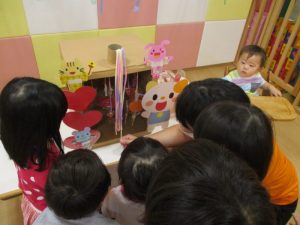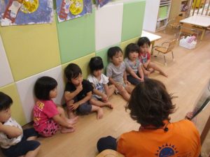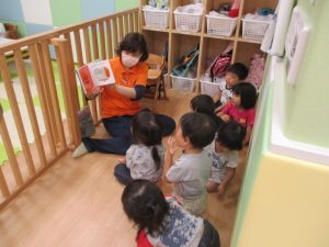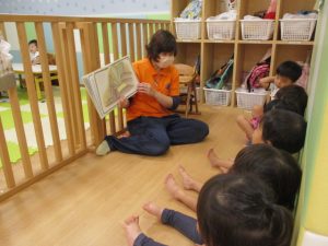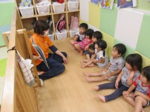 今回は2歳児さんりんごぐみさん?の読み聞かせに注目したいと思います。