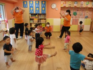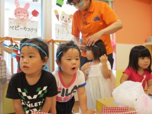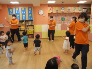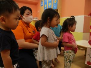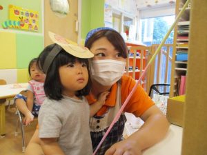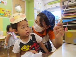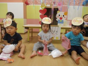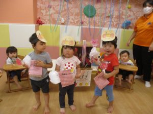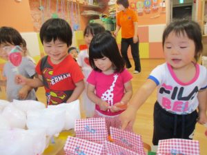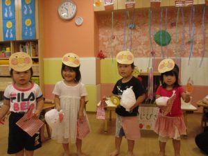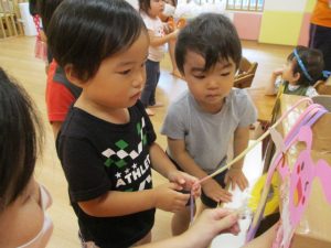 少しでもお祭り気分を味わえるよう、サンライズキッズ保育園・高槻園では、おまつりごっこ?を開催し、