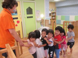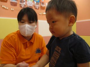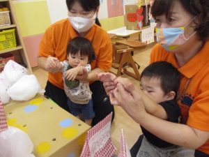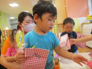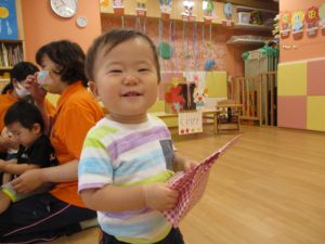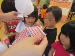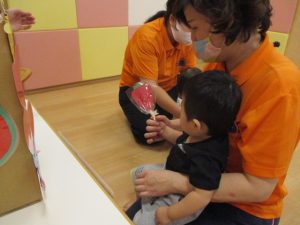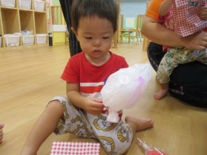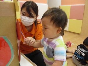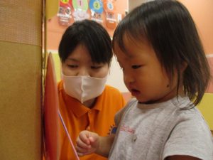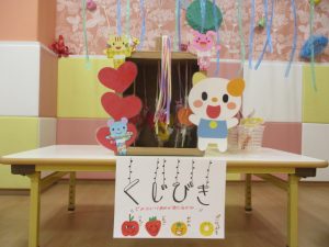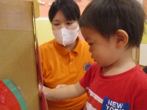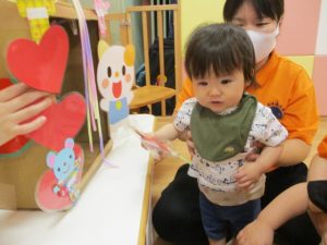 ももぐみさん?のお友だちも、保育者と一緒にくじ引きを楽しみましたよ![]()