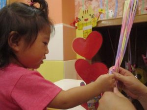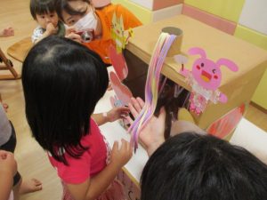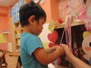 『一本だけ好きなひもを引っ張ってね‼』とお話すると、うなづきながら真剣に聞いているりんごぐみさん?のお友だちでしたよ![]()