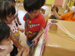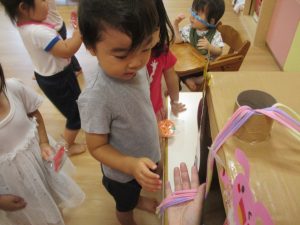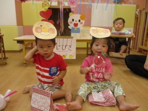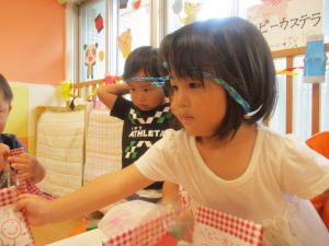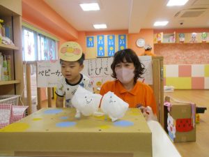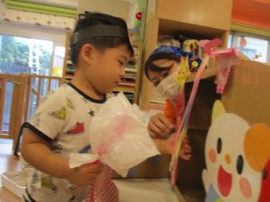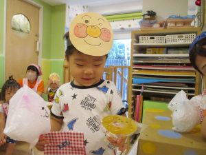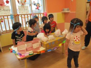 後日、お休みをしていたお友だちも、おまつりごっこを楽しみましたよ![]()