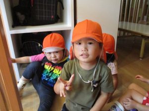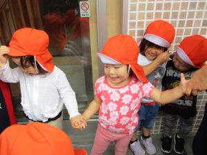 カリキュラムの後、お散歩の準備をして出かけますよ![]()