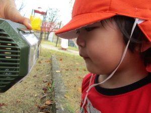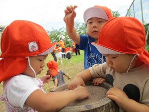 肌に触れる風もだんだんと冷たくなり、ますます深まる秋?を感じながら、自然との触れ合いを楽しんでいる子どもたち![]()