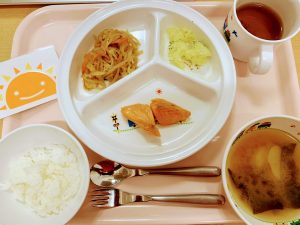※今日のおやつは、定番のマカロニあべかわでした。茹でたマカロニに、きな粉さとうをまぶせば出来上がり♪簡単でおいしいおやつです。
