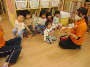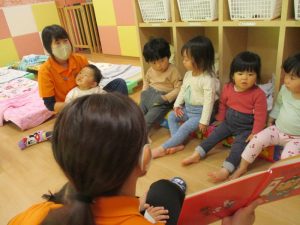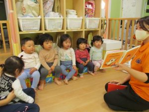 給食の後、着替えを済ませ、大好きな絵本タイムです![]()