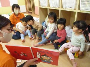 今回の絵本ブログは、1歳児クラスいちごぐみさん?に注目してみましたよ![]()