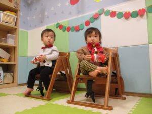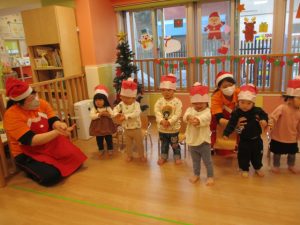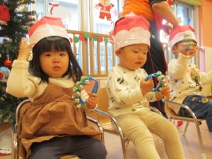 ちえ先生お手製のサンタマラカスを振って、かわいい表情で楽しんでいましたよ![]()