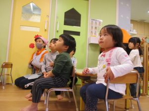 お話が進んでいくと、子どもたちもどんどん物語に引き込まれていますね![]()