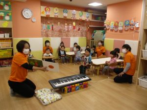プログラム3.お歌、英語の歌”Apple&Bananas”親子で”Row Row Row”