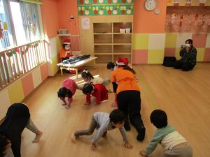 時間がまだあるし…ということで、絵本を視聴後、リトミックをしました![]()