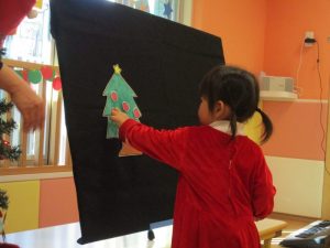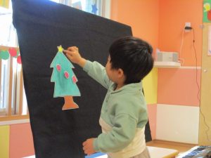 ツリーの飾り付けを子どもたちにも手伝ってもらいましたよ![]()