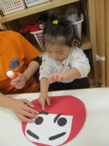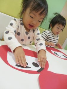 だるまの向きに悩む姿もありましたが、保育者に教えてもらうことで納得していた子どもたち?