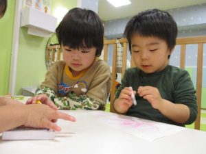 もも組のお友だちはスタンプをすることが好きなようで嬉しそうな表情も見られました?