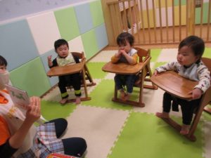 今回ご紹介するのは、朝のおやつ前の読み聞かせです![]()
