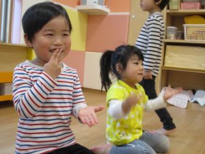 サンライズキッズでは、関心をもって楽しく身につけられるように保育者も一緒に楽しくをモットーに取り組んでいますよ![]()
