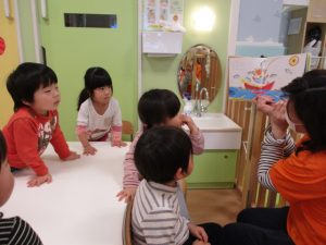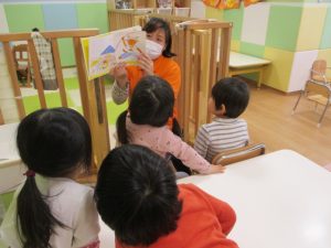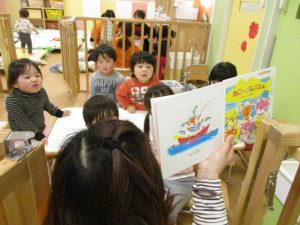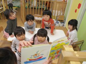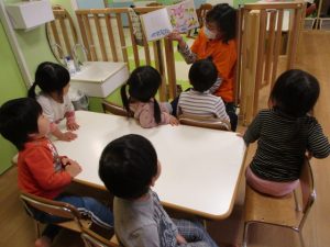 今回の読み聞かせは、2歳児クラスりんごぐみさん?です![]()