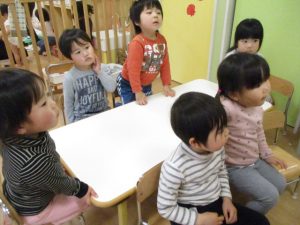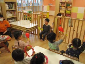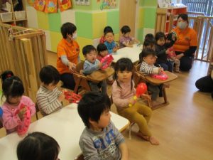 この日は、特別にりんご組さんに保育者の代わりに前に出てきてもらいました![]()