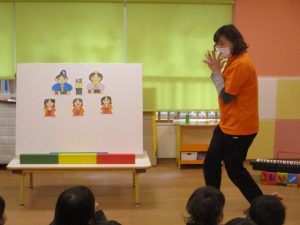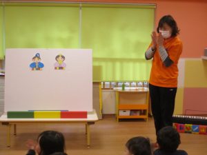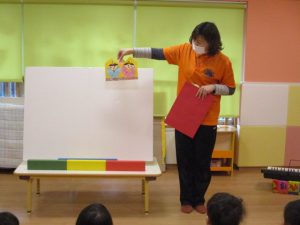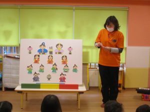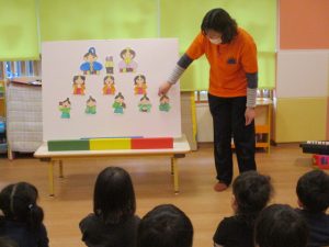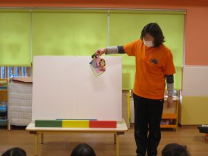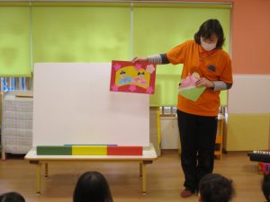 さてお次は、パネルシアターのはじまりです。![]()