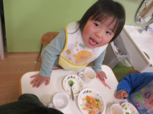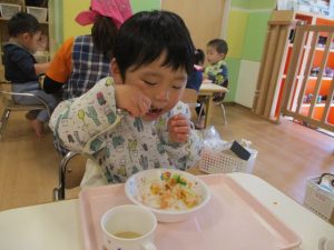 「うわぁーおいしそー」といいながら、パクパク食べる子どもたちでした。![]()