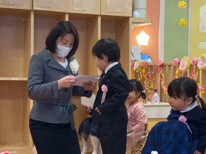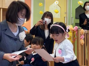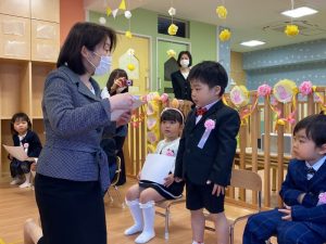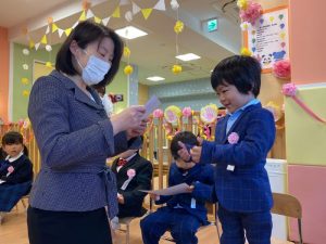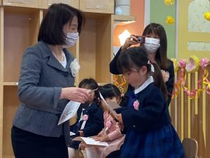 コロナ禍の中、いろいろとご協力をいただいたおかげで、無事に卒園式が開催されました。