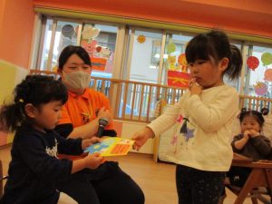 の後、保育者からの出し物のプレゼントです![]()