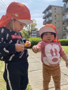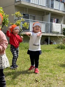 りんご組のお友だちは追いかけっこやごっこ遊びなど自分たちで遊びを考えながら遊ぶことに夢中になっていました![]()