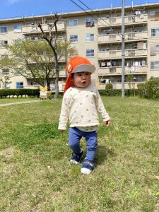 風に乗って飛んでいるシャボン玉を一生懸命追いかけて楽しんでいましたよ![]()