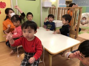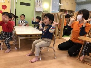 手遊びをしながら、英語に親しんでいますよ![]()