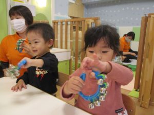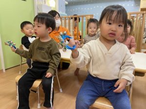 初めて保育園で持つ楽器にあそびも入って、楽しい時間となりました![]()