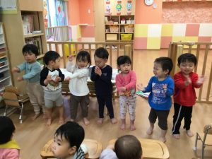 さて、サンライズキッズ保育園では、火曜日と木曜日に英語の取り組みがあり、楽しく参加しています
