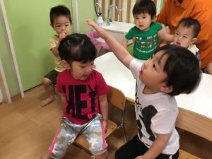 「いいこ いいこ してあげる 」の場面では、子どもたち同士でいいこしてくれました![]()
