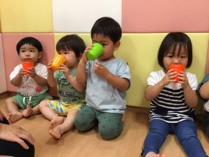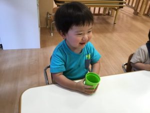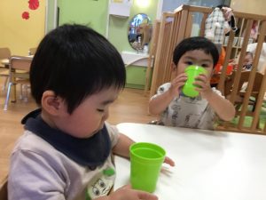 いつもとは違うカラーコップで飲むことが子どもたち楽しみの一つになっていますよ![]()