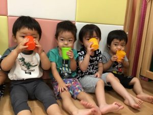 子どもたちも活動後や散歩から帰ってくると水分を取っています![]()