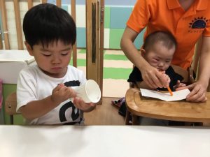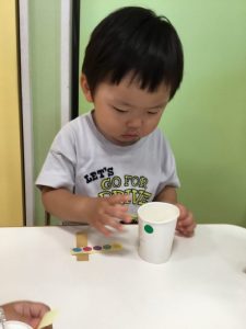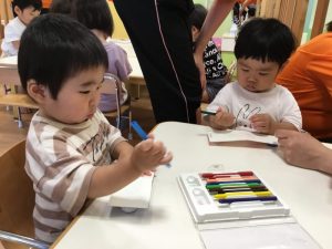真剣にお絵描やシール貼りをしていたこどもたちです
