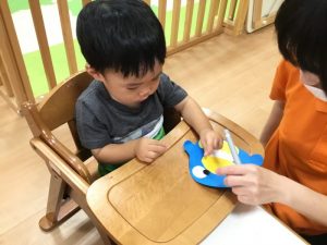 左利きのお友だちには左手用のハサミで挑戦しましたよ!