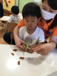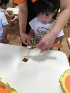 保育者と一緒に、丁寧に慎重に切り進めていきました?