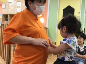 今回は、高槻園で8月で産休に入る保育士がおり、お腹の赤ちゃんを触らせてもらった様子をお伝えしたいと思います