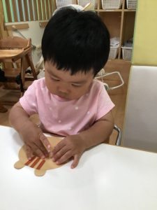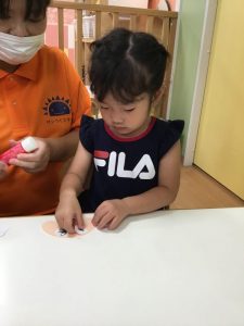 指先でつまんで真剣な表情で貼り付けていました![]()