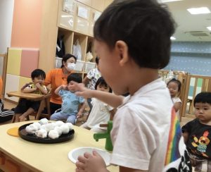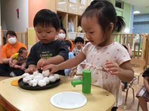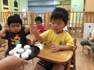 みんな1人ずつお団子をもらって、とってもうれしそうです![]()
