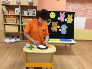 ということで、団子(ふわふわ粘土)を切り分けて…。