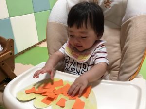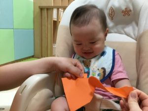 最初に、保育者と共に画用紙を破りましたよ?