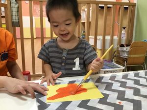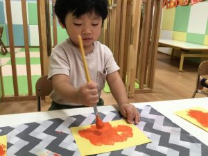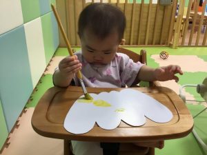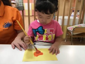画用紙に自由に色を付けていきました?