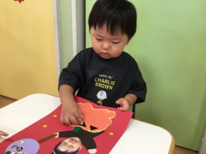 かぼちゃおばけの顔をパーツを貼り合わせました☺️