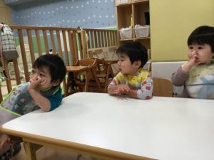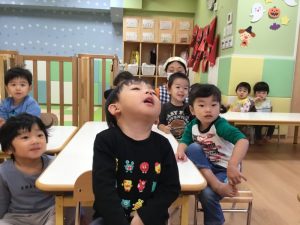 絵本を読み終わった後、保育者に尋ねられて、答えていた子どもたちです![]()