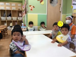 子どもたちは、口元が見えるマスクに興味津々な様子で保育者を見ていましたよ![]()