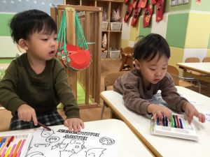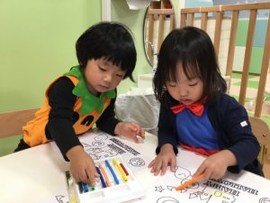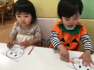 ハロウィンの塗り絵を楽しみました?
