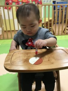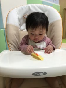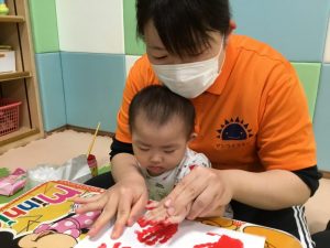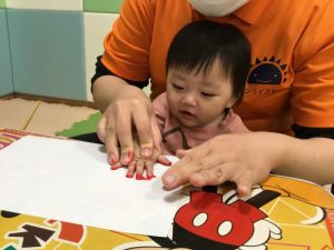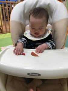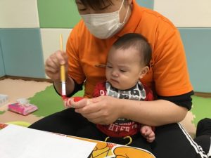 手が真っ赤になっていくことをとても不思議そうにしながら観察していました![]()